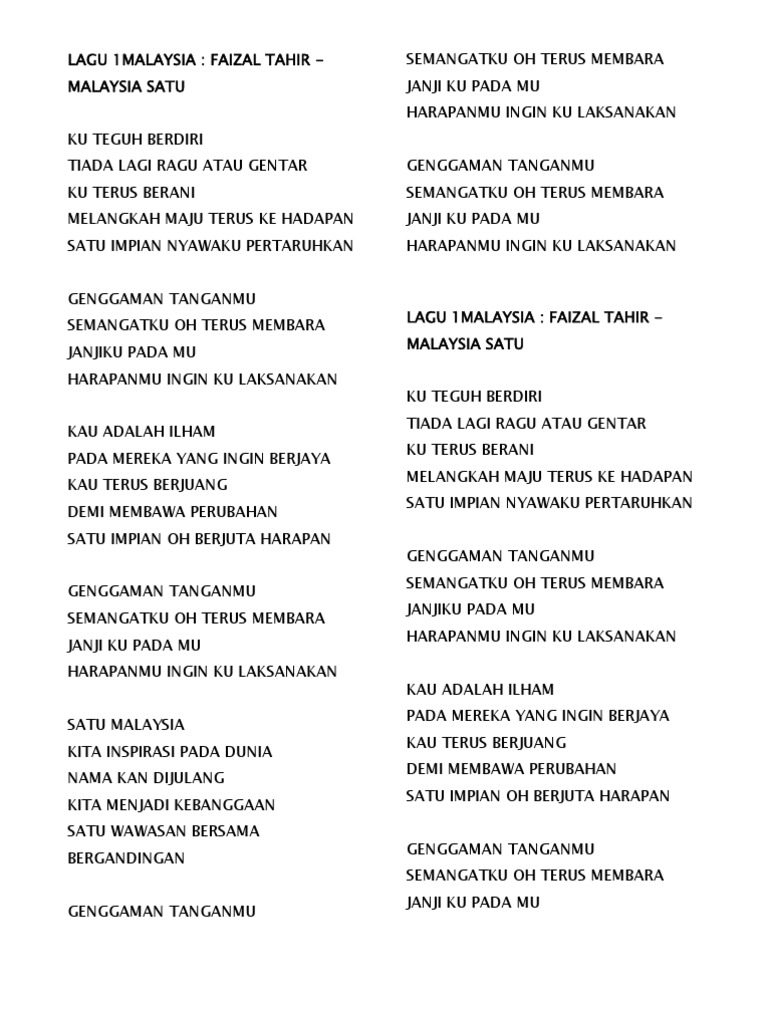 PRE Ku pinta Tuhan lindungi nya Kerna saat nyawa ku terpisah Hanya Kau saja mampu menjaga. Faizal Tahir Hatiku tetap hanya padamu Keranamu aku berdiri Joe Flizzow Tanpamu cita-cita Hanya kekal sebagai mimpi Semuanya bermula dari sini Faizal Tahir Negaraku Negaraku Ku beri sepenuhnya Ku beri sepenuhnya demi. Berikut kutipan lirik lagunya tidak terduga waktu ini kan tiba jelas di minda gambaran yang.